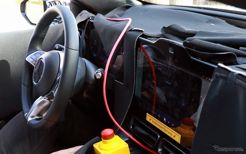 실내 스파이샷에 따르면, 대시보드 전체를 가로지르는 39.1인치 MBUX 하이퍼스크린 디스플레이가 탑재될 것으로 보인다.