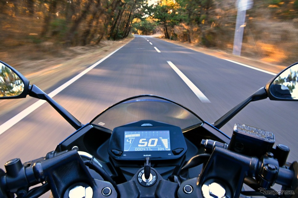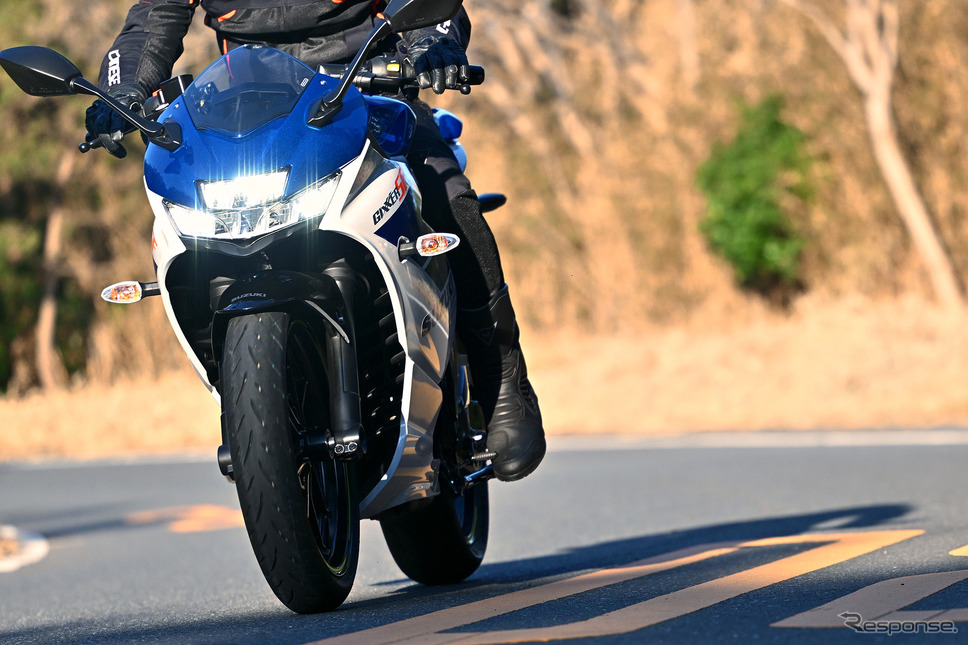 서스펜션과 브레이크는 제원상 특별할 것 없는 구성이다. 하지만 가벼운 차체 덕분에 자세를 제어하는 감각과 제동력에 대한 신뢰감이 충분히 뒷받침된다. 여기에 더해, 핸들링과 접지감을 좌우하는 전후 타이어에 레이디얼 타입을 선택한 점에서, 스포츠 라이딩을 바라보는 스즈키의 시선이 얼마나 진지한지 읽을 수 있다.