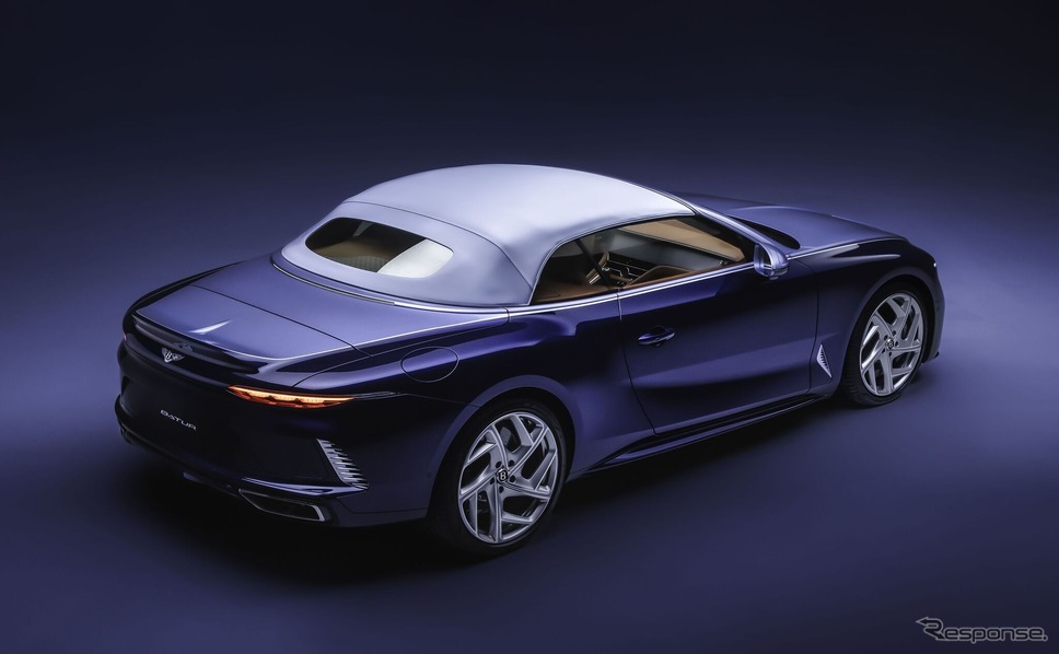 상단 컬러인 '브레스로 블루'는 루프 캔버스와 컬러 매칭을 통해 벤틀리 최초의 비스포크 컬러 루프를 구현했다. 루프를 수납하면 동일한 깊이의 블루 톤을 지닌 에어 브리지가 드러난다. 외관 디테일은 보닛의 핀스트라이프, 휠과 사이드 미러의 포인트 컬러, 폴리시드 티타늄 배기 피니셔, 브라이트 실버 그릴 등으로 마무리된다.
