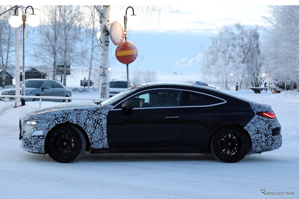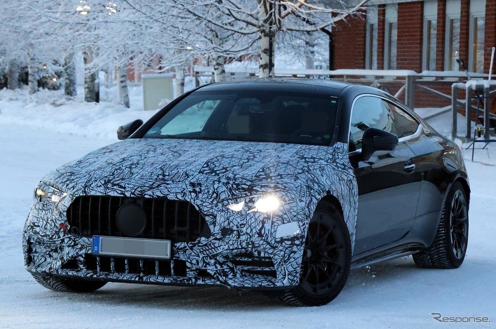 스크루프 반 카메라가 메르세데스벤츠 CLE 페이스리프트 모델이 설원에서 테스트 주행을 하는 순간을 포착했다. 직전에는 기본형 모델이 잡혔지만, 이번에 카메라에 들어온 주인공은 훨씬 더 강력한 출력과 공격적인 스타일을 갖춘 메르세데스AMG CLE63으로 보인다.