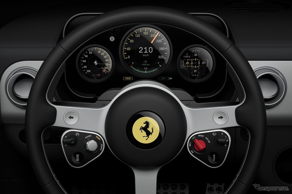정교하게 설계된 기계식 버튼과 계기, 토글, 스위치류에 다기능 디지털 디스플레이를 조합해 구성한 인터페이스의 주요 요소도 함께 공개했다. 페라리는 기능성과 직관적인 조작, 그리고 강렬한 주행 경험을 동시에 구현하기 위해 모든 디테일을 면밀하게 검토했다고 밝혔다.