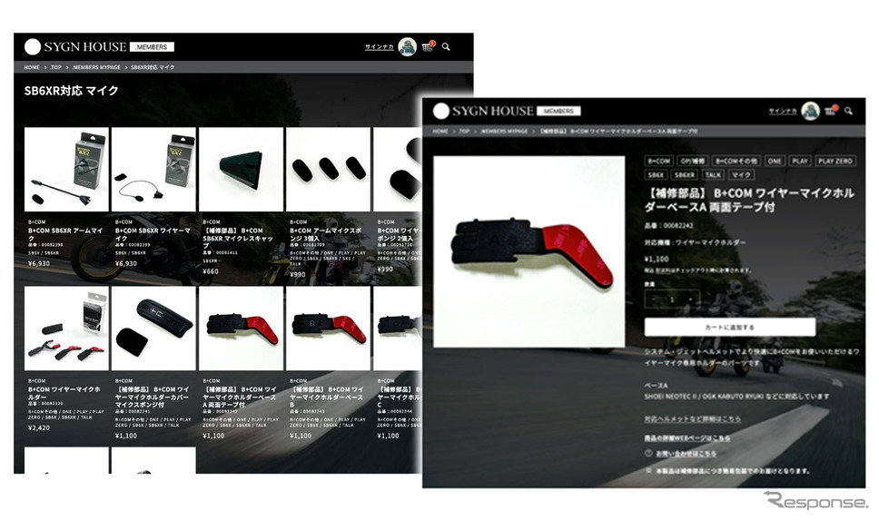 회원으로 가입하면 부속품과 옵션품, 보수용 부품을 온라인으로 직접 구매할 수 있고, 파츠 숍도 자유롭게 이용할 수 있다.