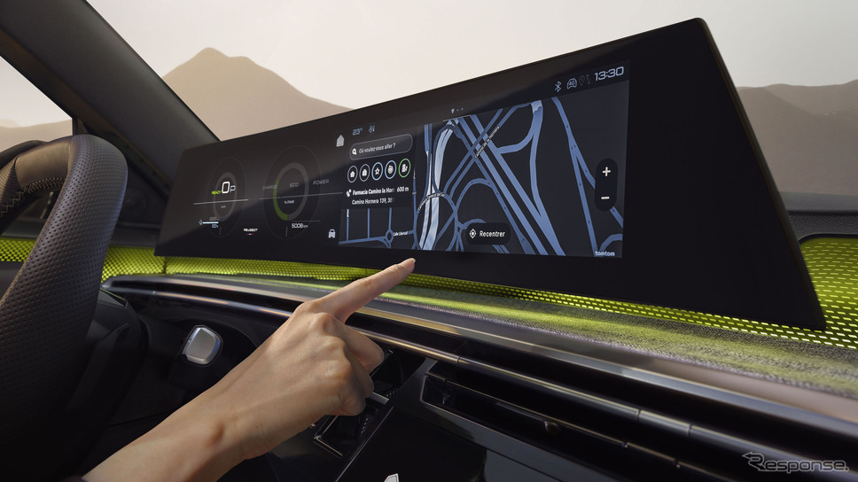 운전석에는 푸조 고유의 PEUGEOT Panoramic i-Cockpit(푸조 파노라믹 아이코크핏)이 적용됐다. 운전자를 향해 완만하게 휘어진 21인치 파노라믹 커브드 디스플레이를 중심으로, 시인성과 조작성을 모두 고려한 최신 운전자 환경을 구현했다.