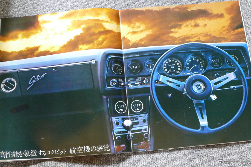 인스트루먼트 패널은 당시 스포티 모델의 정석을 따랐다. 스티어링 휠은 콘 형태의 3스포크 타입이고, 그 너머에는 운전자를 향해 각도를 조정한 계기류를 배치했다. 글로브박스에는 큼직하게 ‘galant’ 레터링 오너먼트를 넣어, 70년대 초반 자동차 특유의 분위기를 전한다. 시트는 하이백 타입이 적용됐다.