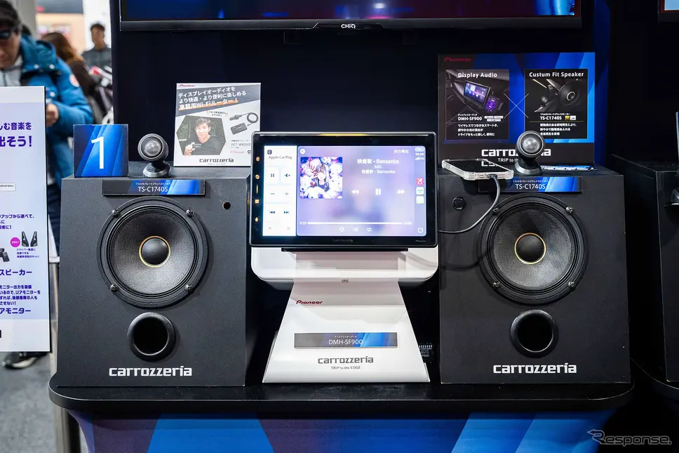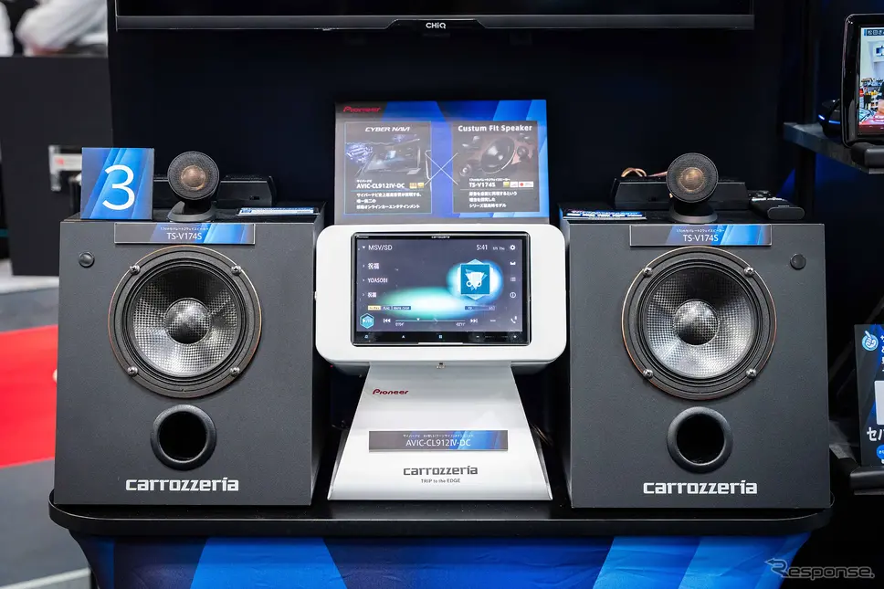 사운드 측면에서 하이엔드를 겨냥한 시스템 제안으로는 플래그십 사이버 내비(AVIC-CL912IV-DC)와 V 시리즈(TS-V174S)의 조합이 소개됐다. 음악 플레이어 역할을 하는 카 내비에 고음질 트레이드인 스피커를 더해, 기능과 사운드 모두에서 최상위를 노리는 셋업이다.