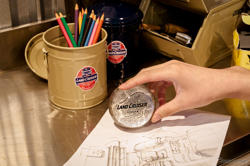 이 밖에도 엠보스 가공이 만들어내는 입체감으로 레트로한 매력을 더한 알루미늄 ‘사인 플레이트’(2,970엔(약 2만7,000원)), 금속 특유의 질감을 살린 스테인리스 대형 로고 스티커(1,320엔(약 1만2,000원)), 레트로풍 오리지널 디자인 박스에 담긴 두꺼운 마이크로파이버 타월 12장 세트(3,300엔(약 3만0,000원)), 유리 돔 속에 랜드크루저 디자인이 떠오르듯 입체적으로 표현된 ‘유리 페이퍼웨이트’(1,650엔(약 1만5,000원)), 협업 디자인 티셔츠(5,940엔(약 5만4,000원)), 핀즈 컬렉션 전 6종(660엔(약 6,000원)) 등 다양한 상품이 라인업됐다.