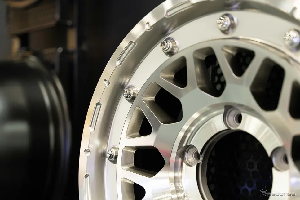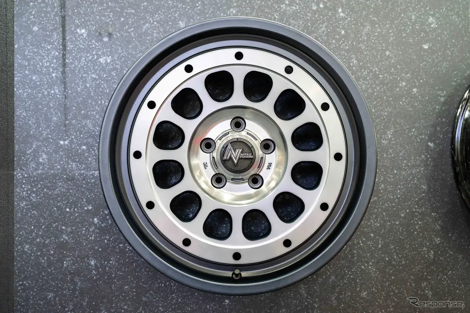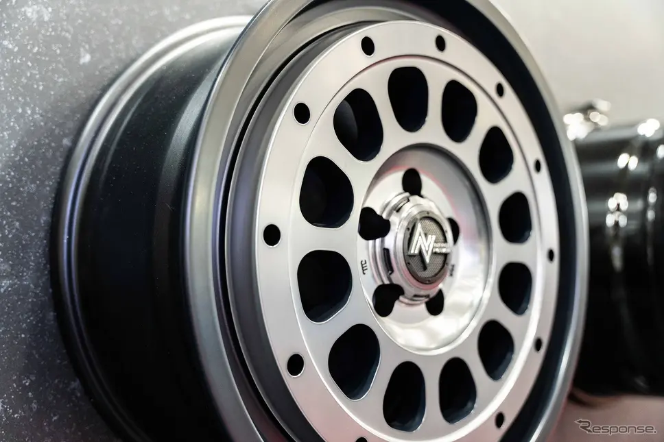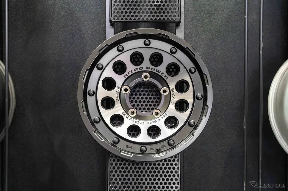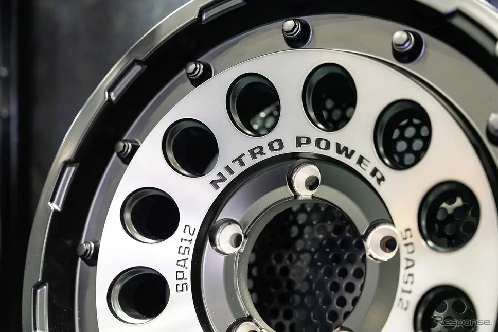 나이트로 파워 부스에서 또 하나의 화제가 된 모델은 R12 HOWIZTER(R12 하우저)다. 홀을 뚫은 디스크 디자인에 더해, 외곽부에 소구경 홀을 두른 독특한 이중 구조가 시선을 끄는 휠이다. 이 R12 하우저에 짐니 전용 센터 캡이 새로 설정됐다.