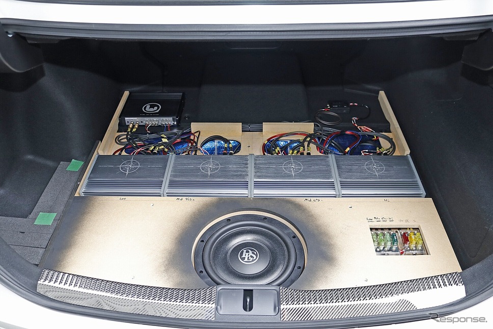 대규모 카 오디오 시스템을 꾸밀 때 가장 큰 고민은, 수많은 유닛을 어디에 어떻게 배치할 것인가 하는 문제다. 물리적으로는 러기지 공간을 쓰게 될 수밖에 없지만, 동시에 적재 공간의 사용 편의성도 지켜야 한다. 사운드 스테이션 AV Kansai 사카이점에서 인스톨을 맡은 나카노 씨의 크라운은, 이런 상충되는 과제를 높은 수준에서 풀어낸 사례다. 오너의 주문은 “휠체어를 싣기 위해, 돌출물 없이 완전히 평평한 러기지 공간을 유지해 달라”는 것이었다.