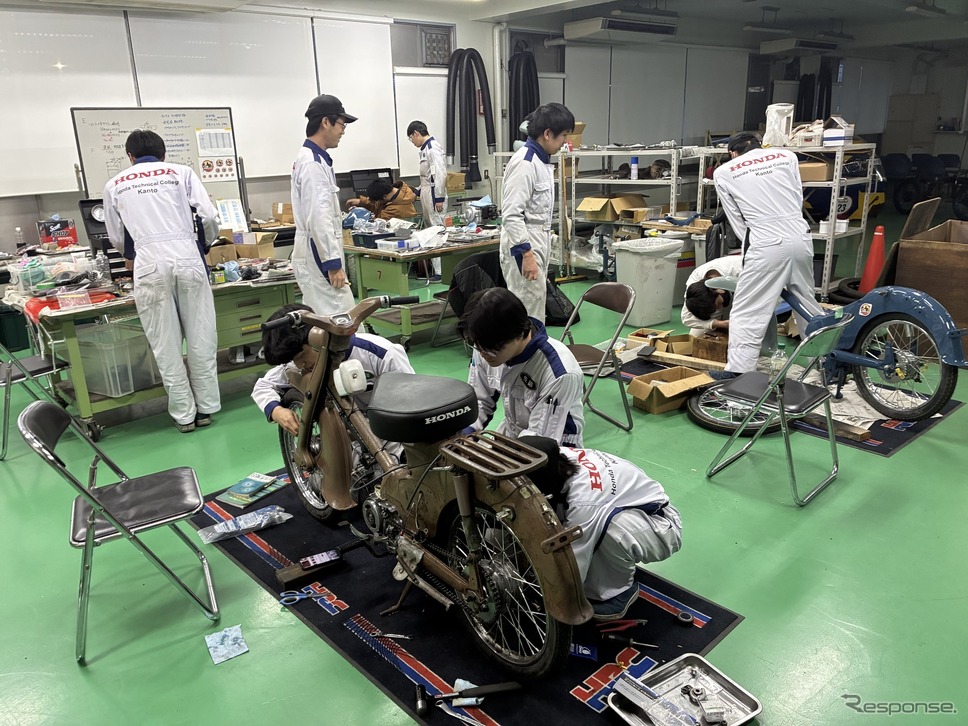 혼다학원이 2026년에 창립 50주년을 맞는 것을 기념해 ‘창 50 Cub 챌린지’ 프로젝트가 지난해 여름 시작됐다. 간토 캠퍼스와 간사이 캠퍼스가 힘을 모아 1세대 슈퍼 커브를 복원했고, 4월 하순부터 전국 각지를 돌며 혼다학원의 기술력과 앞으로의 비전을 알리고 있다.