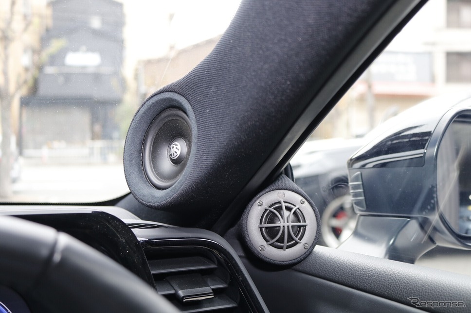 나카노 씨는 프런트 스피커에 공을 들여 선택한 DLS를 자신의 크라운 크로스오버에 이식했다. 처음에는 2웨이 시스템으로 출발했지만, 이후 3웨이로 확장하고 철저한 방진·방진 처리를 더했다. 여기에 대시보드 순정 위치에 스피커를 추가해, 지금의 프런트 4웨이 시스템으로 단계를 끌어올렸다.