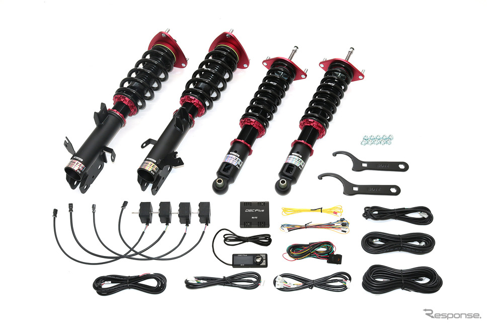 DAMPER ZZ-R SpecDSC Plus는 실내에서 손쉽게 감쇠력을 조절할 수 있도록 설계된 제품으로, 앞서 소개한 전장 조절식 서스펜션 DAMPER ZZ-R에 전자제어식 감쇠력 조절 기능을 결합한 차고조절 키트다. 컨트롤러에는 2.5인치 VA 액정 디스플레이를 탑재해 네 바퀴의 감쇠력을 상시 표시한다. 업계 최초의 ‘풀 오토’ 모드를 갖춰 탑승 인원과 주행 상태를 바탕으로 적절한 감쇠력을 자동으로 선택해 차체 거동을 안정시키는 전자동 제어를 구현했다. G 센서를 기본 장착해, 맵 제어 모드에서는 선회 G, 가감속 G, 차량 속도에 맞춰 세밀한 감쇠력 조정이 가능하다.
