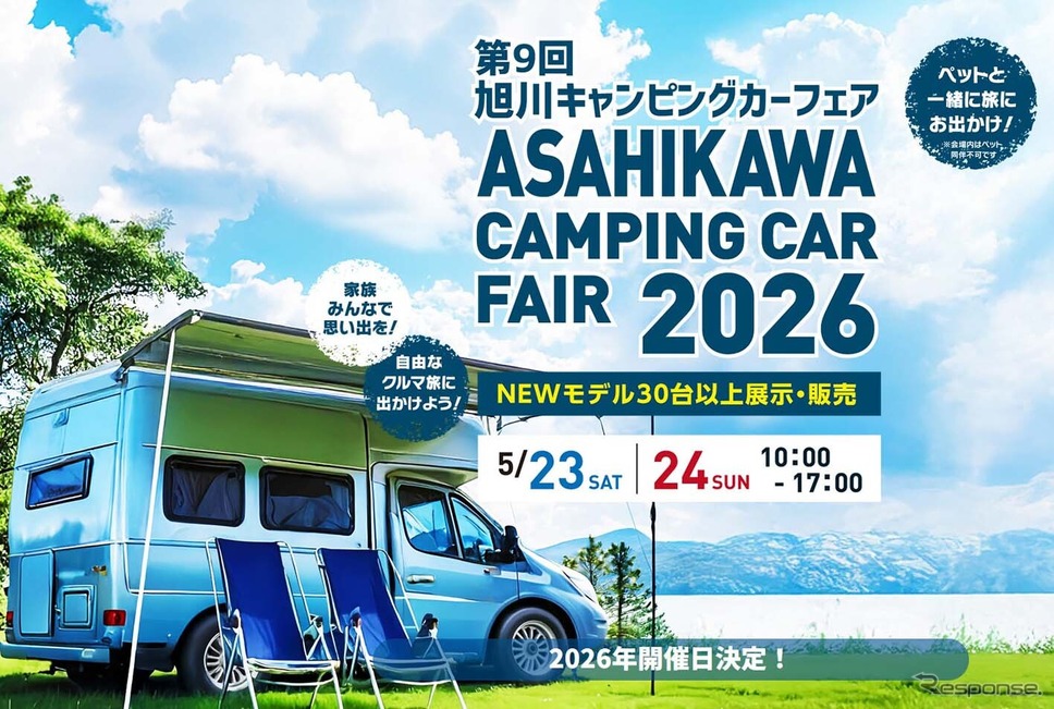 아사히카와 캠핑카 페어 실행위원회가 제9회 아사히카와 캠핑카 페어 2026을 5월 23일과 24일 이틀간, 도로 휴게소 ‘미치노에키 아사히카와’(아사히카와 지역산업센터)에서 개최한다.