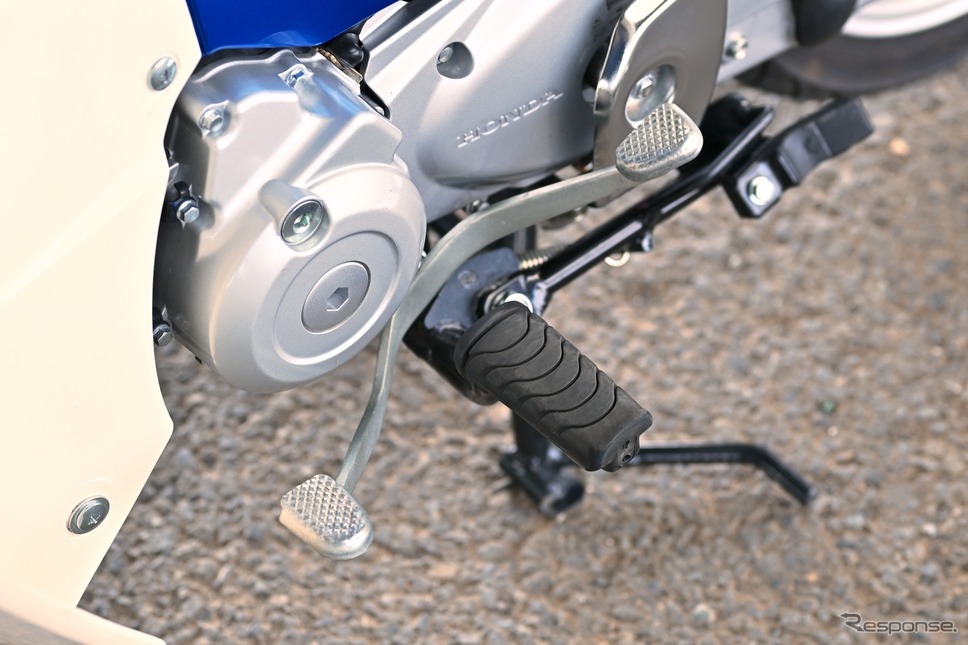 슈퍼 커브 계열이 예외 없이 채택해 온 이 시프트 페달을 능숙하게 다루는 요령을 글로 꼼꼼하게 풀어 쓴다면, 예상보다 분량은 훨씬 길어질 것이다. 그렇게 자세히 적어도 온전히 감각을 전하기는 쉽지 않다. 그럼에도 불구하고, 이 구조는 이미 많은 라이더의 몸에 각인된 게 아닐까 싶을 정도로, 누구나 금세 익혀 자연스럽게 다뤄 낸다. 그만큼 완성도가 높은 메커니즘이다.