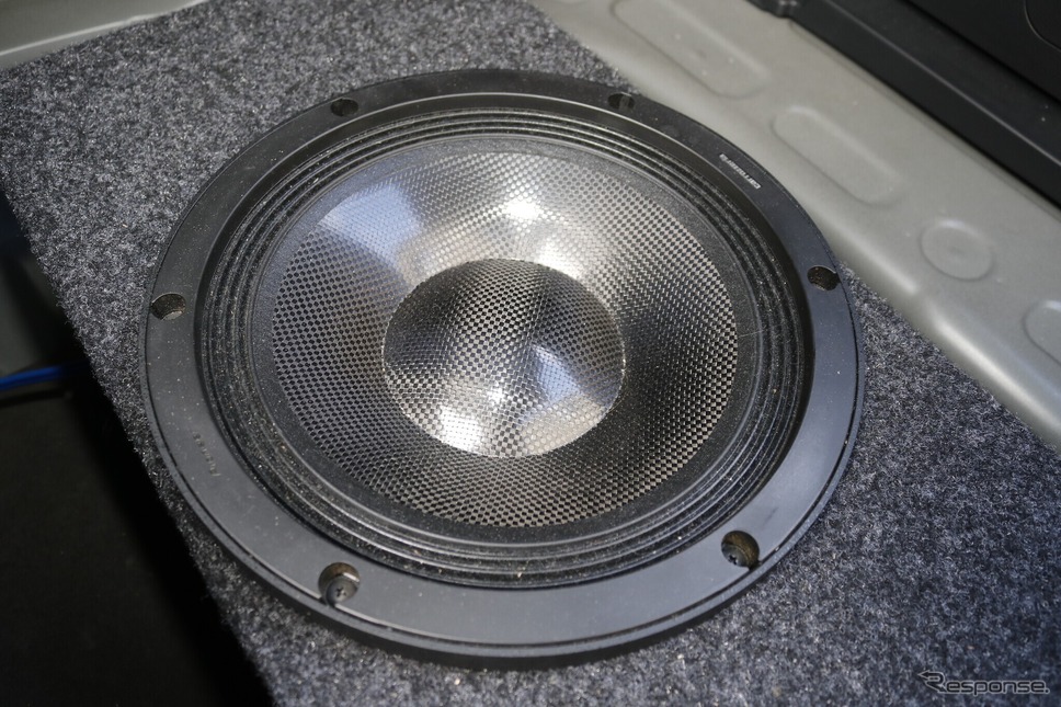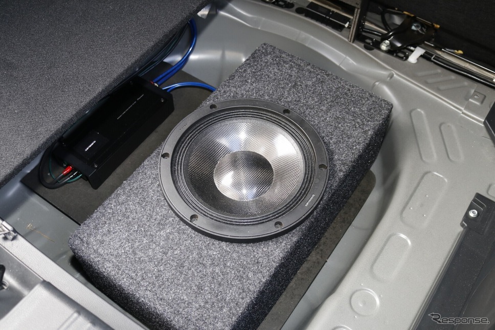 라게지 바닥 아래에는 서브우퍼와 이를 구동하는 파워 앰프가 숨어 있다. 반대로 프런트 스피커 관련 장비는 모두 대시보드 주변, 즉 콕핏에서 완결되도록 설계했다는 점이 이 차의 또 다른 포인트다.